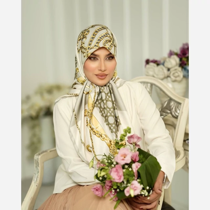 روسری ابریشم ژاکارد بسیار مجلسی سلطنتی دور دست دوز قواره مجلسی بزرگ لیز نیست با سر کردن روسری خوش بدرخشید وقار و زیبایی خودتونو در مجالس تکمیل کنید