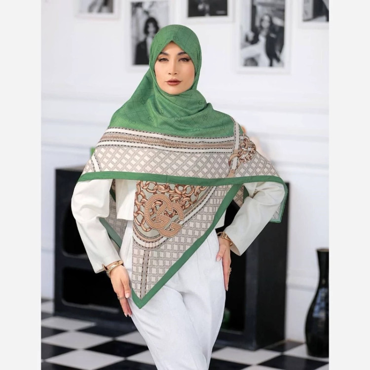 روسری نخی چاپ دیجیتال رنگ سبز دور چرخ