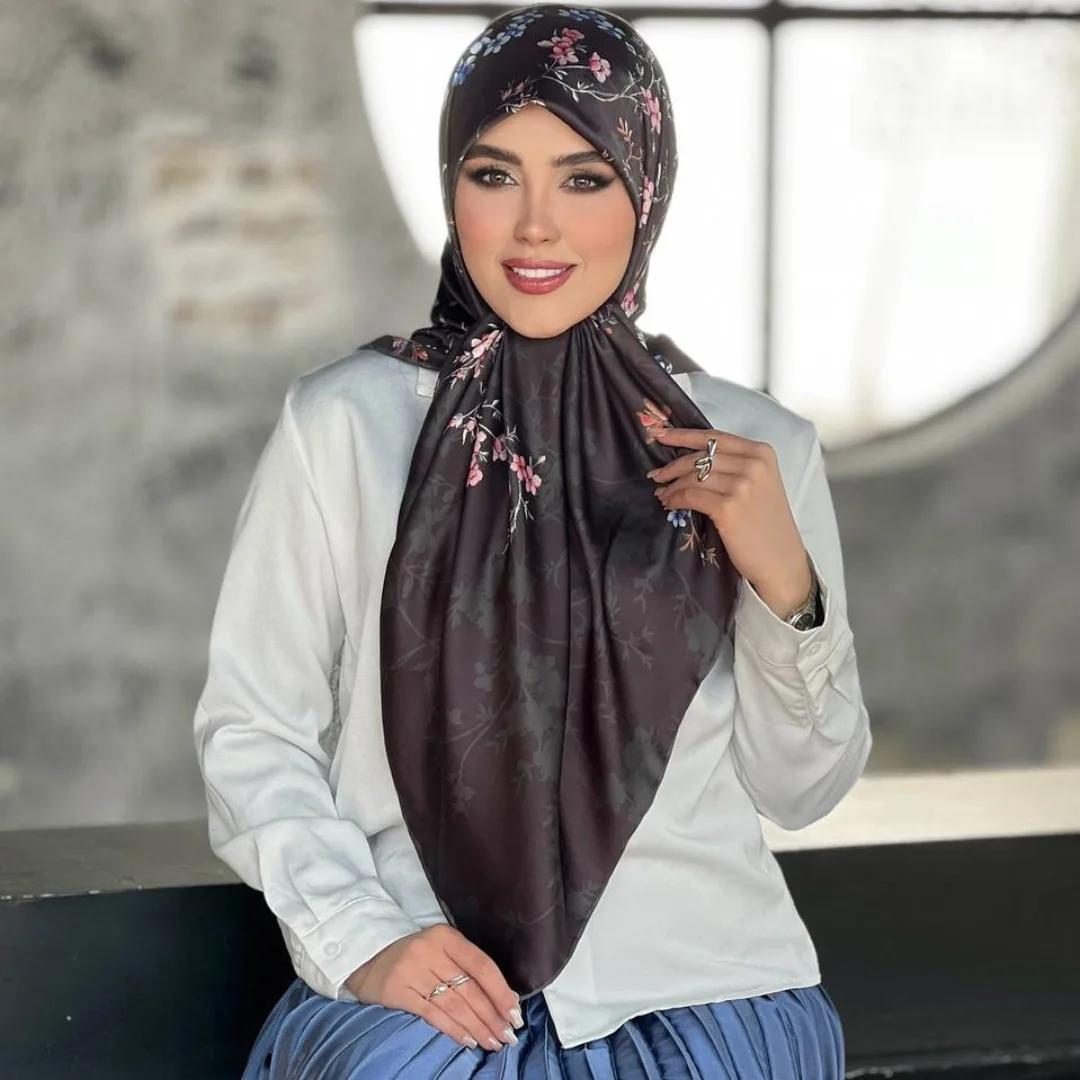 روسری ابریشم ایپک طرح گل و پروانه قواره ۱۲۵