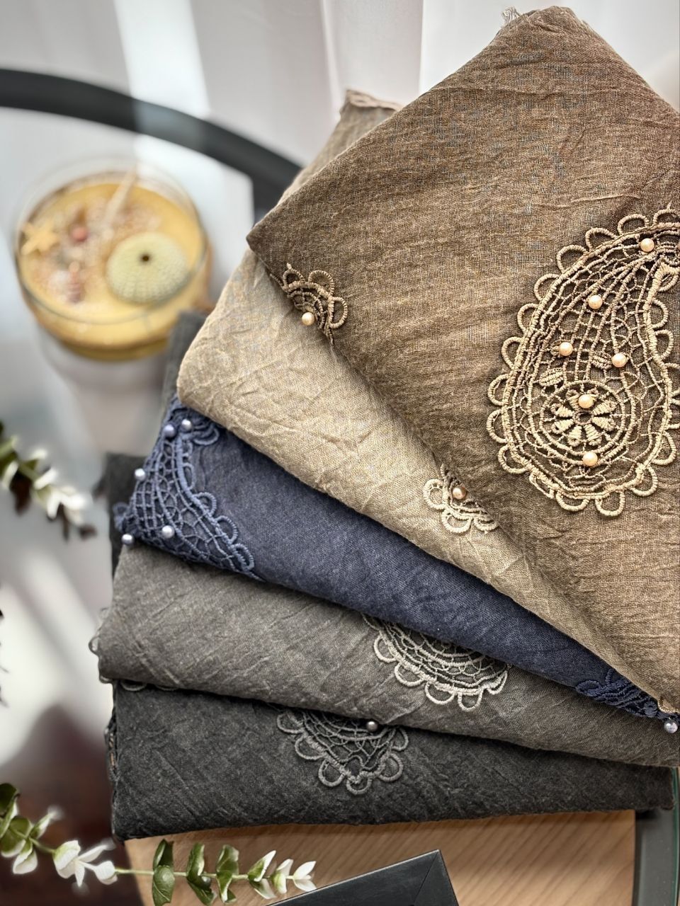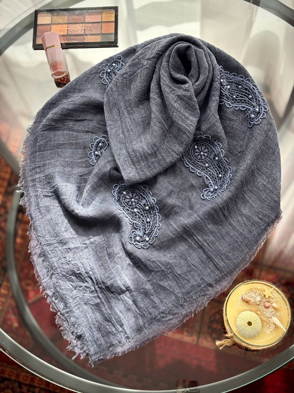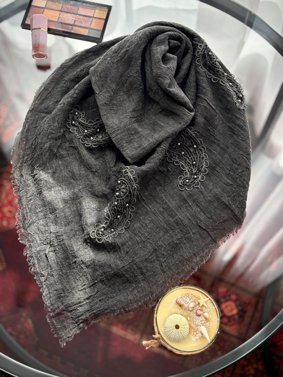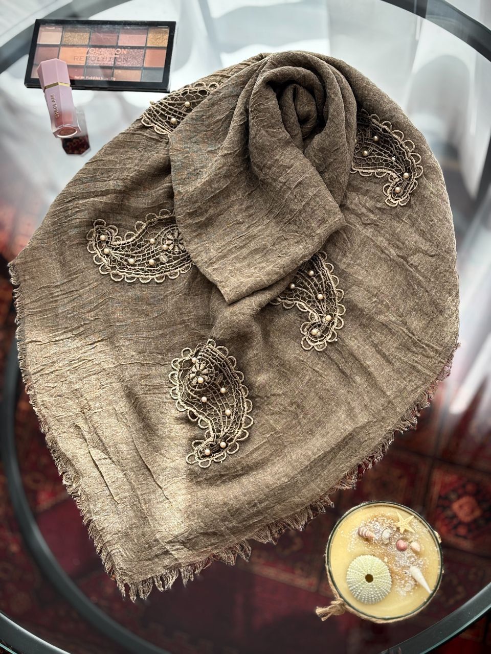 روسری سنگشور گلدوزی مرواریدی بوته جِقّه