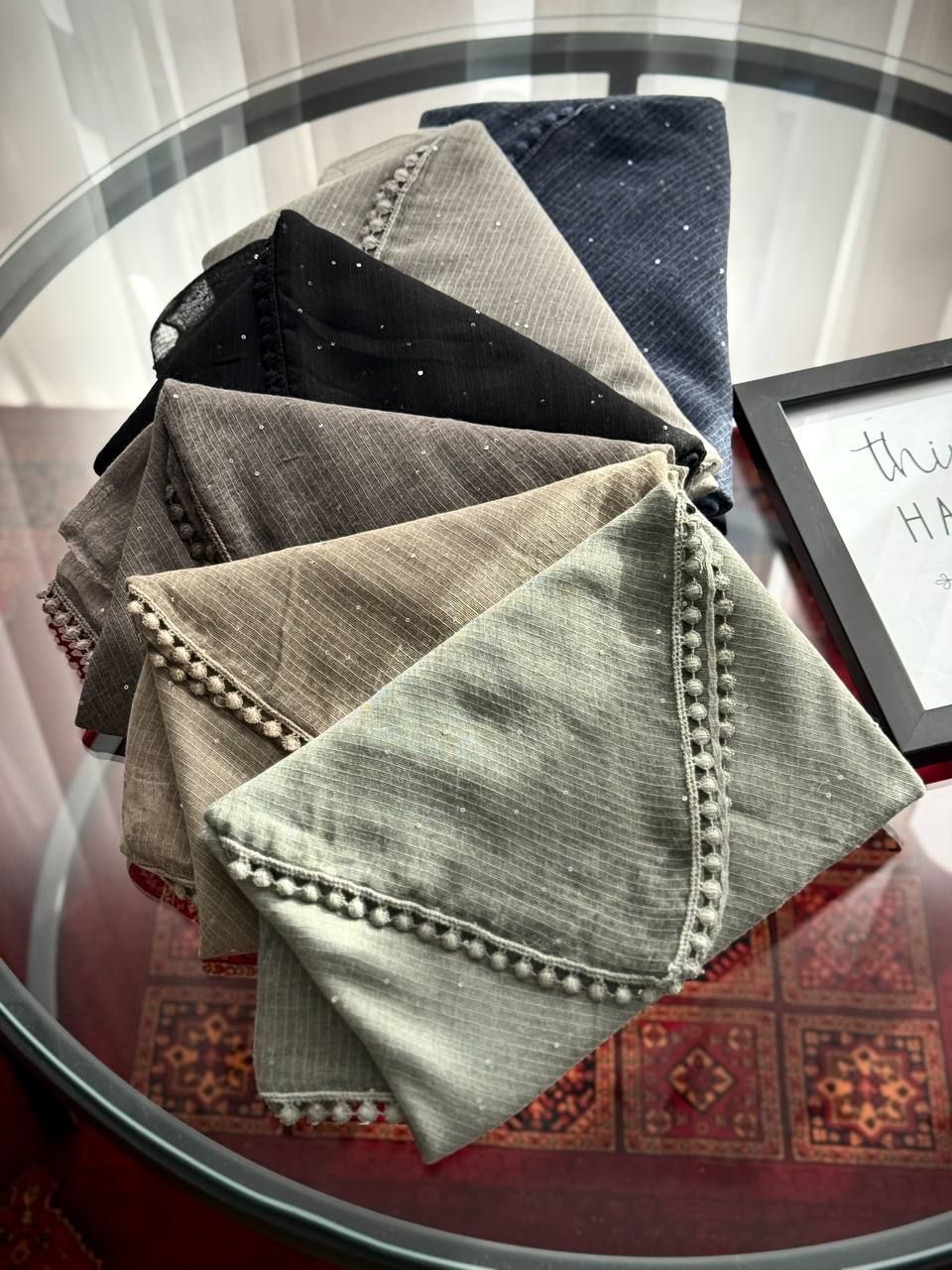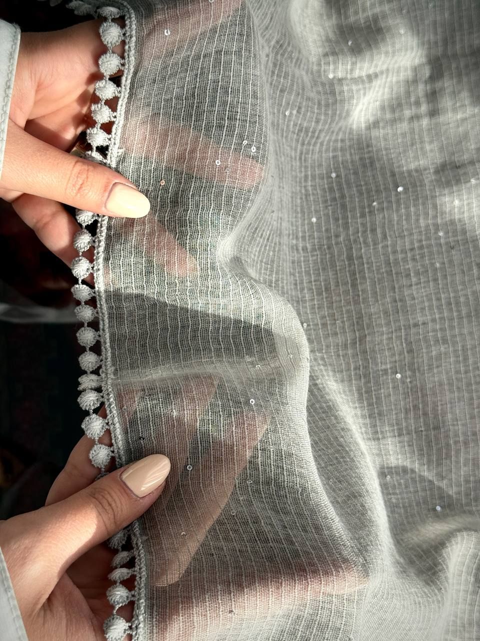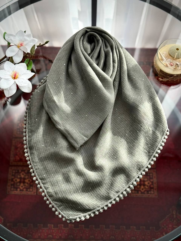 روسری نخی کنفی پولکی دورحاشیه عدسی وارداتی