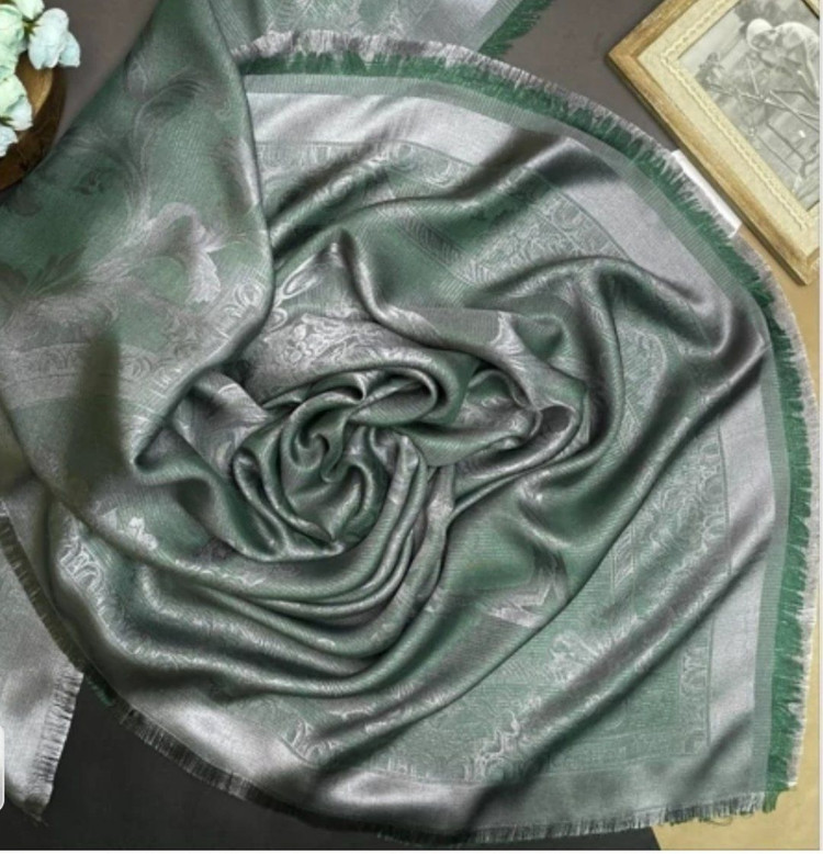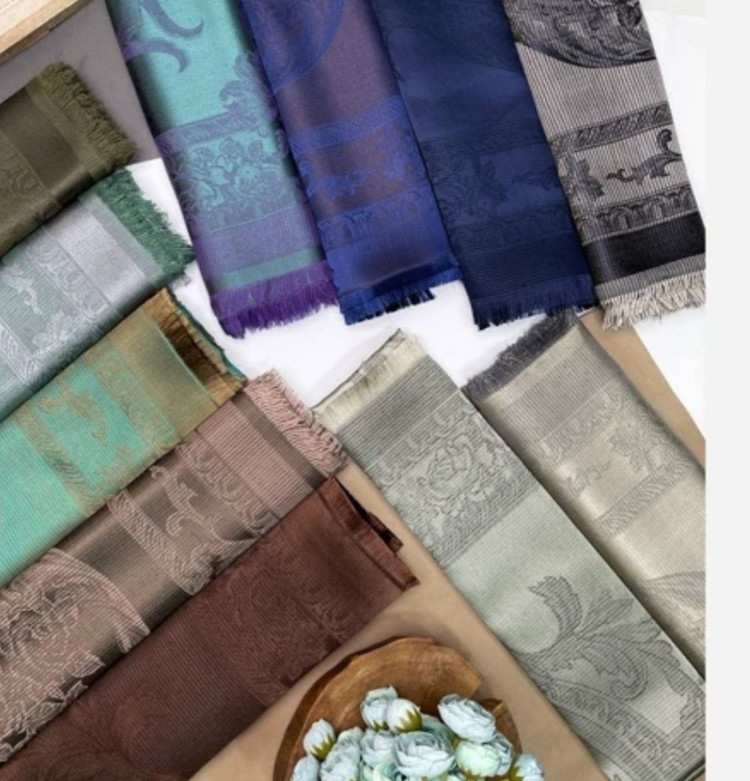 روسری ژاکارد لمه دار چهار فصل دور ریش طرح اسلیمی سلطنتی