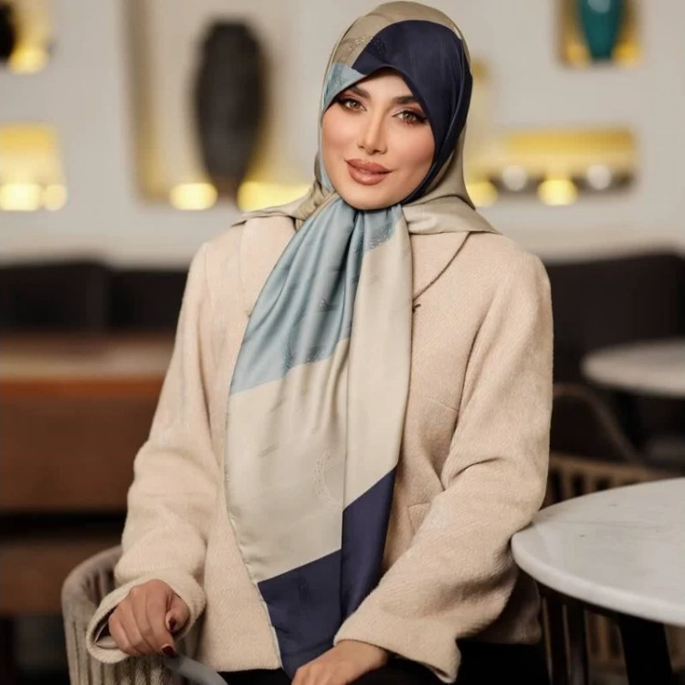 روسری ابریشم ژاکارد طرح هندسی مجلسی