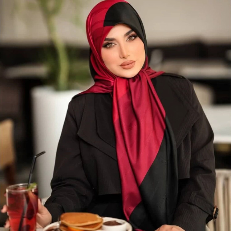 روسری ابریشم ژاکارد قواره بزرگ دور دست دوز مجلسی شیک اصلا لیز نیست