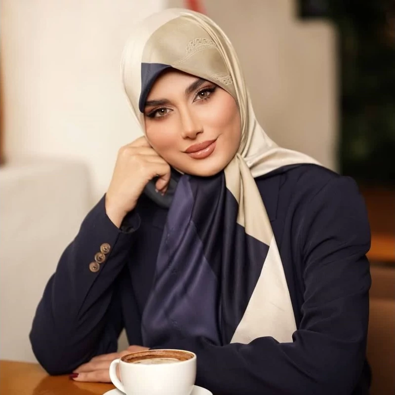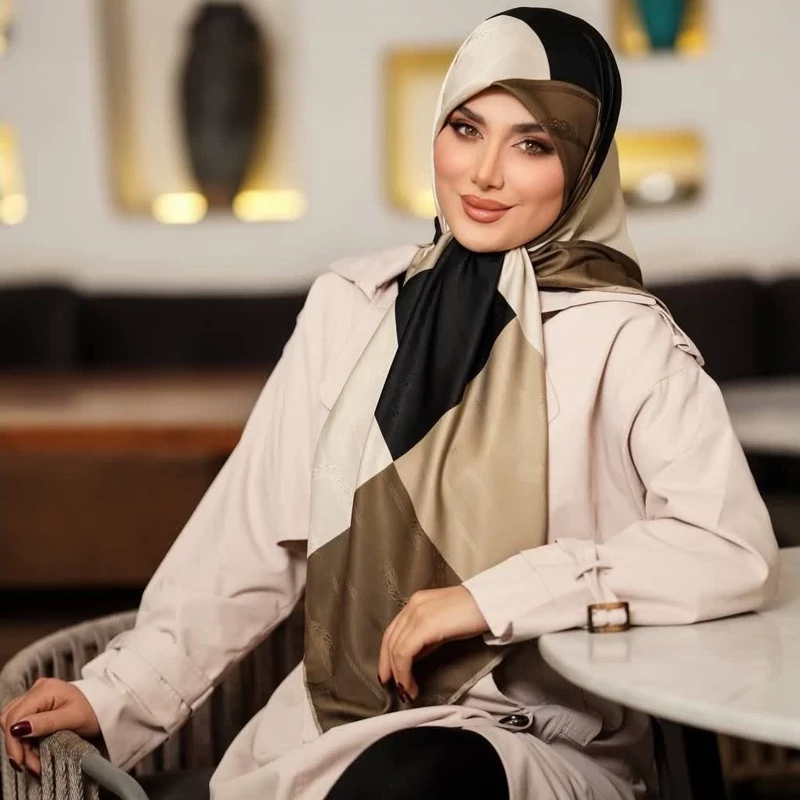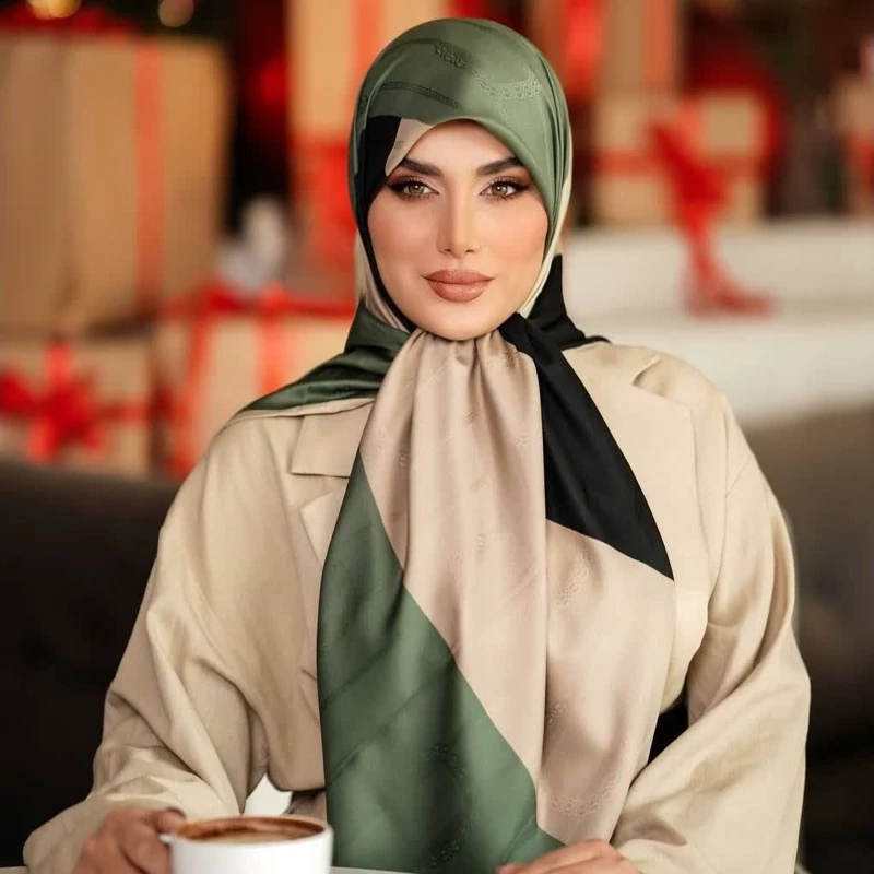 روسری ابریشم ژاکارد طرح هندسی مجلسی