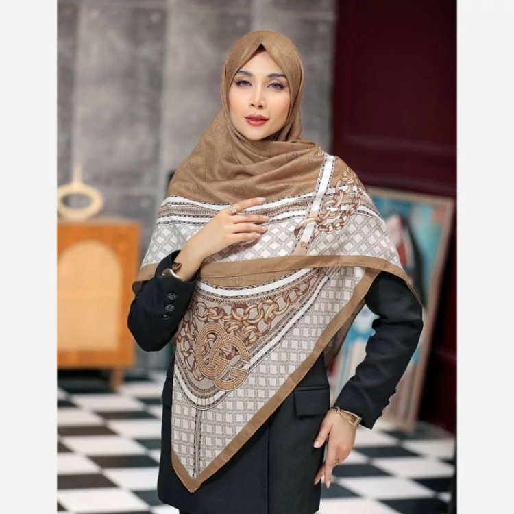 روسری نخی سی اسکارف چاپ دیجیتال دور چرخ قواره بزرگ