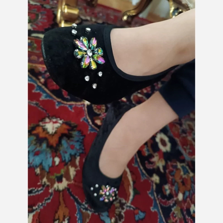 پاپوش مشکی طرح خورشید جواهردوزی شده با متریال کریستال درجه یک