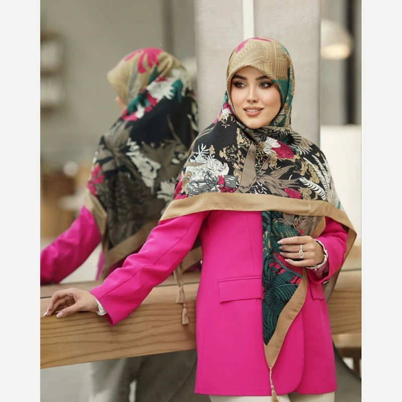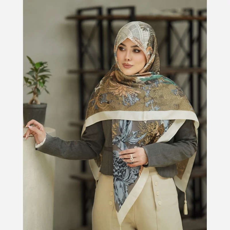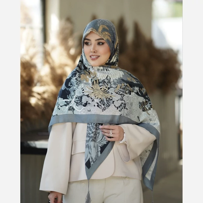 روسری نخ سیا اسکارف ایستایی عالی طرح و نقش شیک