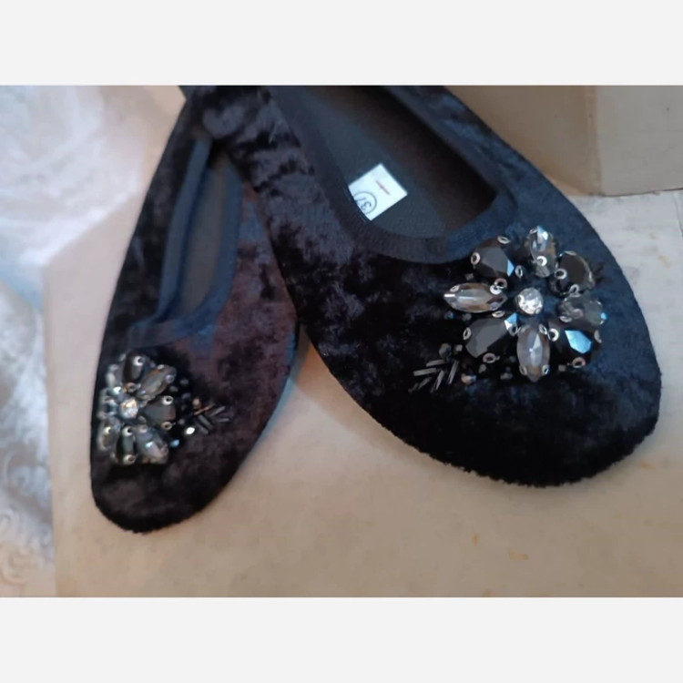 پاپوش مخمل مشکی جواهر دوزی شده