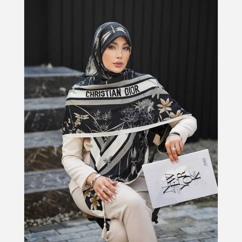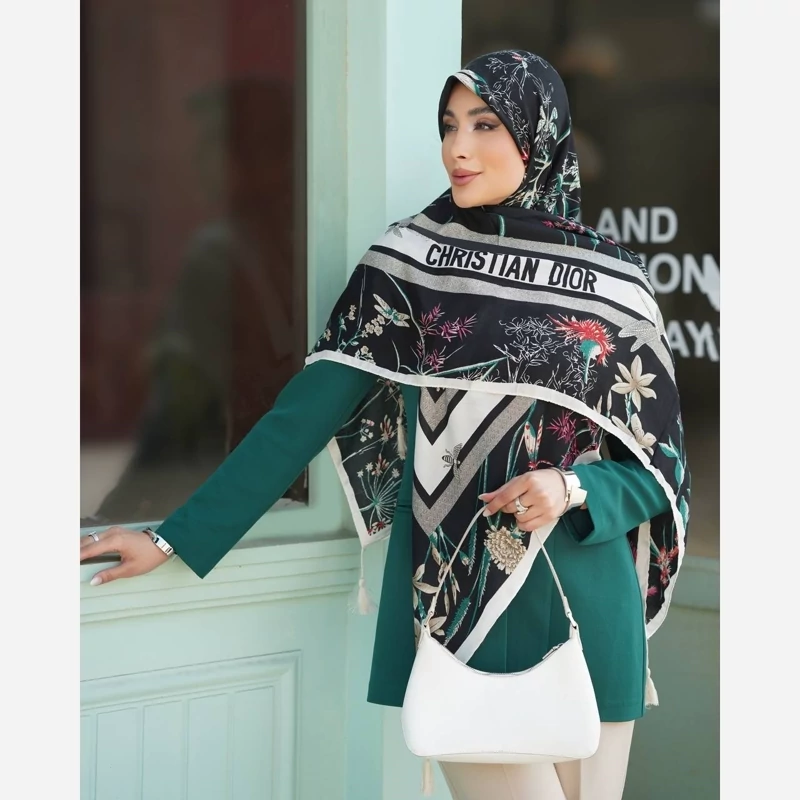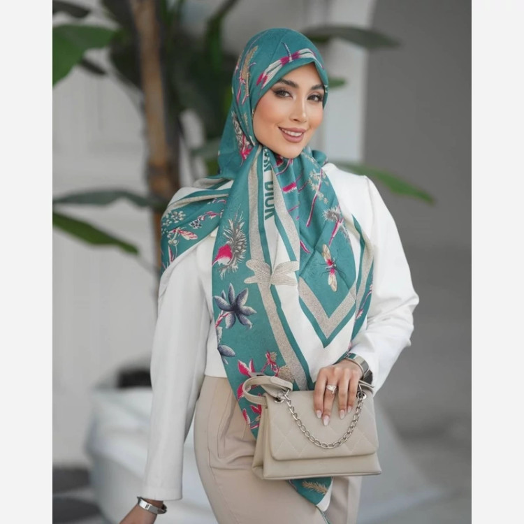 روسری c scarf نخی طرح شاد سنجاقک قواره 140 دور دست دوز منگوله دار