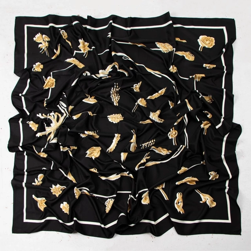 روسری ابریشم ژاکارد مشکی طلایی وارداتی