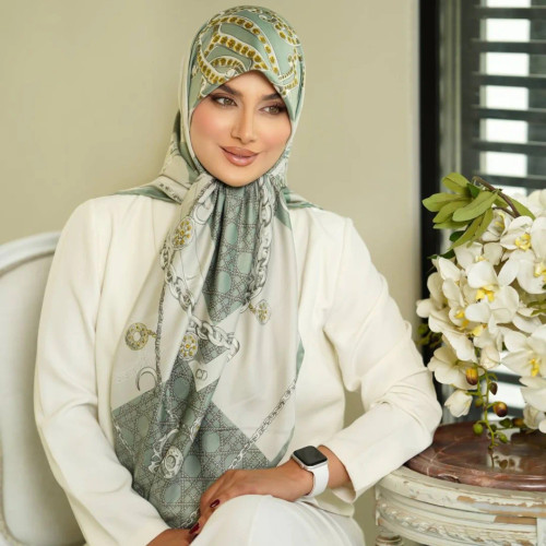 روسری ابریشم توییل طرح شیک حاشیه کمربندی