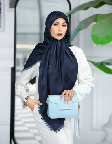 شال ژاکارد بامبو لمه دار اورجینال سرمه ای